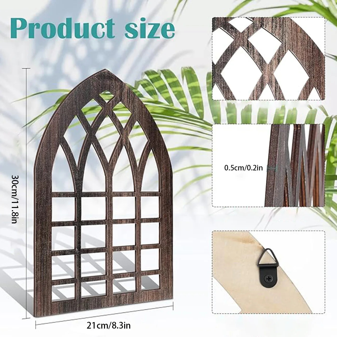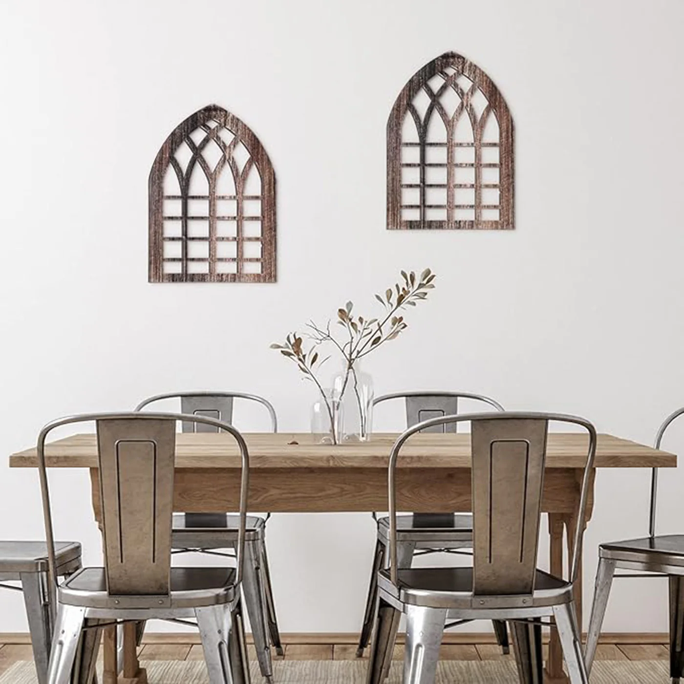2er Set Holz Fensterdeko – Charmante Landhaus Wanddekoration mit Bogen