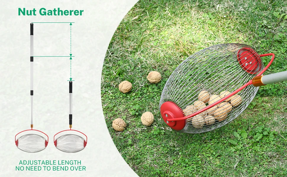 Rückenschonend, effizient und vielseitig: Mit diesem praktischen Sammler lassen sich Nüsse, Früchte und kleine Gegenstände bequem vom Boden aufnehmen – ganz ohne Bücken oder Knien.