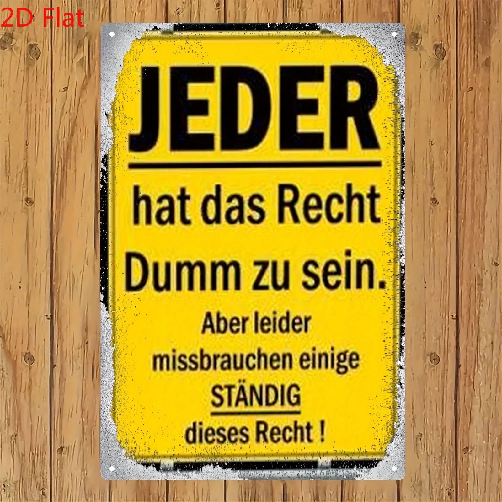 Retro Metallschild im 2D-Flachdesign – 'Jeder hat das Recht, Dumm zu sein' – Wanddekoration, Einfach Aufhängbar